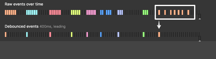 Debounce is particularly useful for implementing behaviour that should only happen after the input has stopped arriving. Probably the most traditional example is building a typeahead search component that triggers an API call whenever we type on an text input field. However, we don't want to hit the API on every keystroke as that'd be expensive in terms of performance. What we do instead is to wait until the user has finished typing.