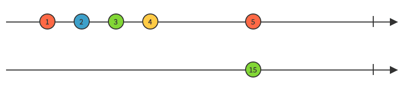 In this example we sum all of the numbers in the source stream. The resulting stream emits the result of the sum once the source stream is done emitting values.